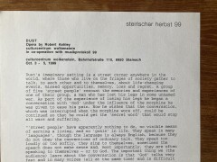 Continue Shopping “(Robert Ashley). Dust. Opera by Robert Ashley. Cultur Centrum, Wolkenstein, Stainach, October 3 – 5, 1999” has been added to your cart.