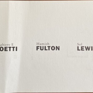 (Alighiero Boetti, Hamish Fulton, Sol LeWitt). Alighiero E. Boetti, Hamish Fulton, Sol LeWitt. John Weber Gallery, New York, February 9, 10 – March 9, 1996