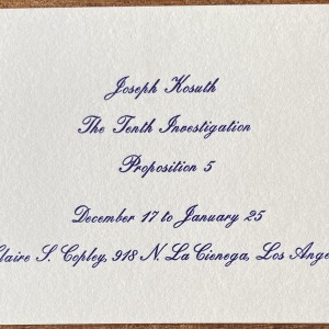 Joseph Kosuth. The Tenth Investigation / Proposition 5. Claire S. Copley, Los Angeles, December 17, [1973] – January 25, [1974]