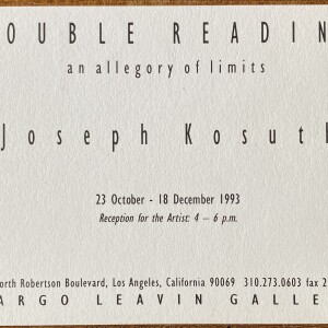Joseph Kosuth. Double Reading, an allegory of limits. Margo Levin Gallery, Los Angeles, California, 23 October – 18 December 1993