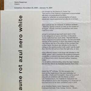 Heinz Gappmayr. Farben. Galerie im Taxispalais, Innsbruck, 24., 25. November 2000 – 14. Jänner 2001