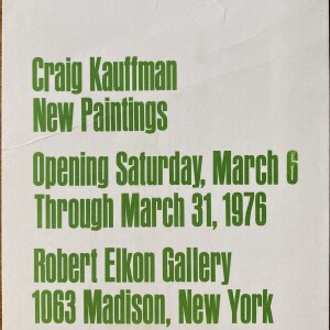 Craig Kauffman. New Paintings. Robert Elkon Gallery, New York, March 6-31, 1976