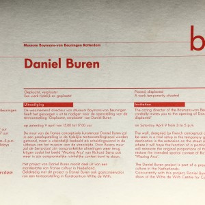 Daniel Buren. Geplatzt, verblasst, Een werk tijdelijk zo geplaast / Placed, displaced. A work temporarily situated. Museum Boymans – van Beuningen, Rotterdam, 9, 10/4 – 12/6/1994