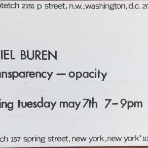 Daniel Buren. Transparency – Opacity. Max Protetch, Washington, D.C. / New York Opening May 7th, [1974]