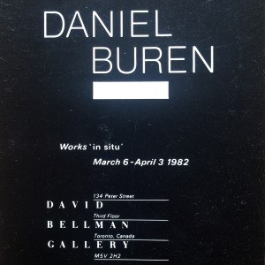 Daniel Buren. Works ‘in situ.’ David Bellman Gallery, Toronto, Ontario, March 6 – April 3, 1982