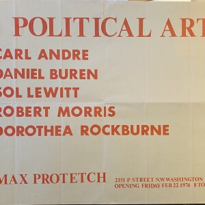 Political Art. Carl Andre, Daniel Buren, Sol LeWitt, Robert Morris, Dorothea Rockburne. Max Protetch, Washington, D.C., February 22, 1974