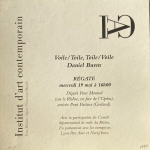 Daniel Buren. Voile/Toile, Toile/Voile. Régate 19 mai [1999]. Départ Pont Morand (sure le Rhône en face de l’Opéra), arrivée Pont Pasture (Gerland)