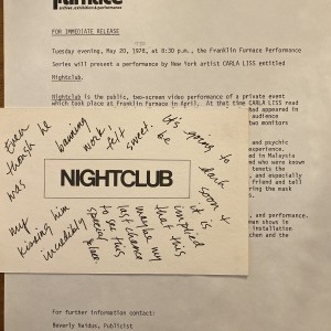 Carla Liss. Nightclub. Franklin Furnace, New York, May 20, 1980