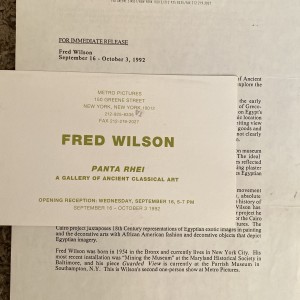 (Fred Wilson). Fred Wilson. Gracie Mansion Gallery, New York, February 14 – March 9, 1990