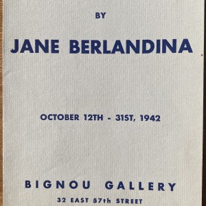 (Jane Berlandina). Recent Paintings by Jane Berlandina. Bignou Gallery, New York, October 12-31, 1942