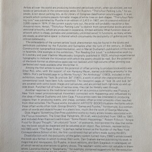 Artists’ books: a survey 1960-1981. Wayne, New Jersey: William Paterson College, Department of Art, Ben Shahn Center for the Visual Arts, no date [1982]