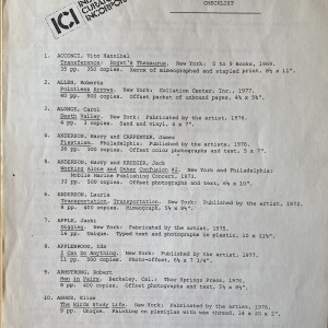 Artists’ Books USA. Checklist. Washington, D.C.: Independent Curators Incorporated, no date [1978]