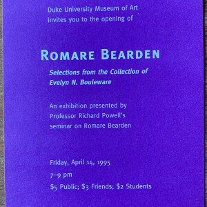 (Romare Bearden). Romare Bearden. Selections from the Collection of Evelyn N. Bouleware Duke University Museum of Art, [Durham, North Carolina]. April 14, 1995