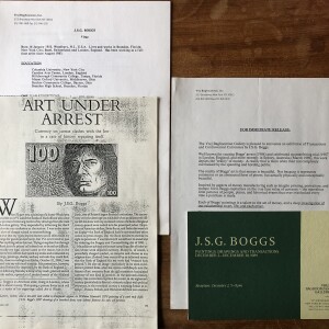 (James Steven George). J.S.G. Boggs. Paintings, Drawings and Transactions. Vrej Baghoomian Gallery, New York, December 2 – 30, 1989
