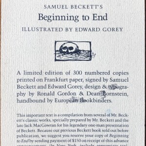 (Edward Gorey / Samuel Beckett). Gotham Book Mart announces the publication of a previously unpublished work: Samuel Beckett’s Beginning to End….