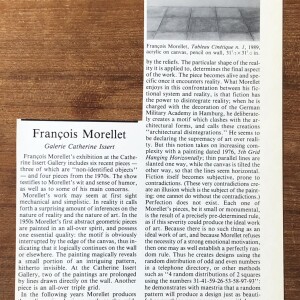 (François Morellet). Claire Bernstein. François Morellet. Team Celeste. Number 22 – 23, October – December 1989, page 75. Clipping.