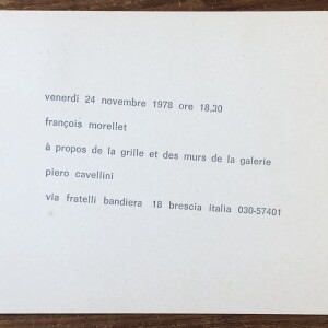 (François Morellet). à propos de la grille et des murs de la galerie. Piero Cavellini, Brescia, 24 novembre 1978