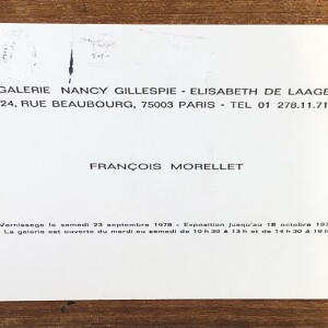 (François Morellet). François Morellet. Galerie Nancy Gillespie – Elisabeth de Laage, Paris, 23 septembre – 18 octobre 1978