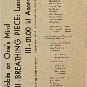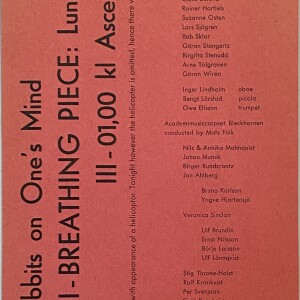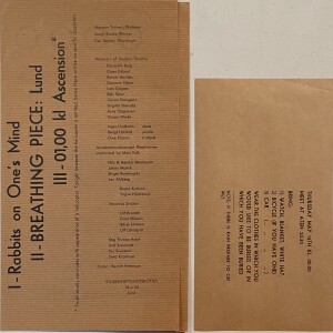 (Kenneth Dewey). I – Rabbits on One’s Mind / II – Breathing Piece: Lund / III – 01,00 kl Ascension. Ken Dewey, Playwright. Studentaftonutskottet, Lund, 14.v.64