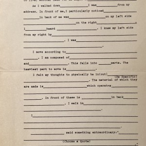 Madeline Gins. A form to be completed towards a “group novel,” distributed as part of Spring 1969 street work events