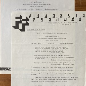 Paul McCarthy. 2 press releases, Franklin Furnace, New York