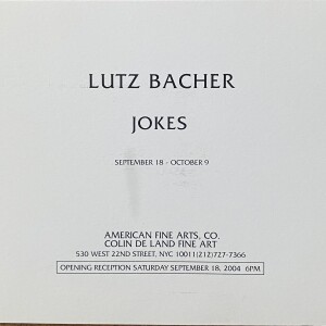 Lutz Bacher. Jokes. American Fine Arts, Co. / Colin de Land Fine Art, New York, September 18 – October 9, 2004