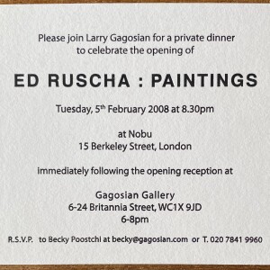 (Edward Ruscha). Edward Ruscha: Paintings. Gagosian Gallery, London. 5 February 2008