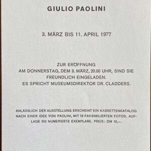 (Giulio Paolini). Giulio Paolini. Städtisches Museum Mönchengladbach, 3. März – 11. April 1977