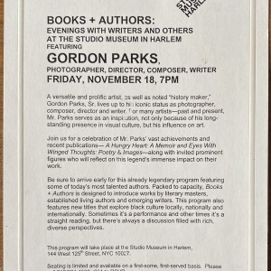 (Gordon Parks). Books + Authors: Gordon Parks. Studio Museum in Harlem, November 18, [2005]