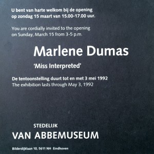 Marlene Dumas. “Miss Interpreted.” Stedelijk Van Abbemuseum, Eindhoven, March 15 – May 3, 1992