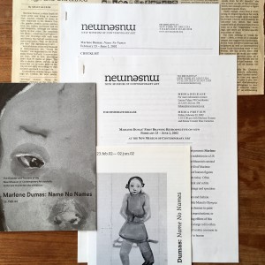 Marlene Dumas. Name No Names. The New Museum of Contemporary Art, New York, 22, 23 February – 2 June 2002