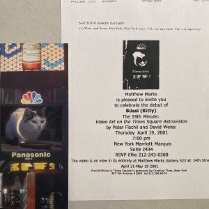Peter Fischli / David Weiss. Cat Drinking Milk. Times Sure Astrovision, New York, April 16 – May 20, 2001. (The 59th Minute: Video Art on the Times Square Astrovision)