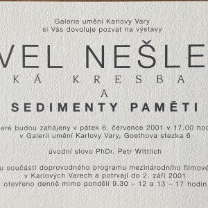 Pavel Nešleha. Ceská Kresba 14 / A Sedimenty Paměti, Galerie uměni Karlovy Vary, Goethova, 6. července – 2. září 2001