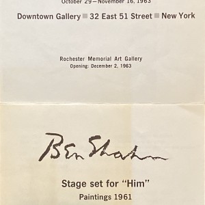 (E.E. Cummings, Ben Shahn). Downtown Gallery, New York, October 29 – November 16, 1963. Homage to E.E. Cummings. Retrospective exhibition. Paintings and drawings, 1901 – 1958 // Ben Shahn. Stage set for “Him.” Paintings 1961.