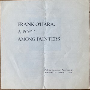 (Frank O’Hara). Frank O’Hara, A Poet Among Painters. Whitney Museum of American Art, February 12 – March 17, 1974