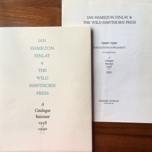 (Ian Hamilton Finlay). Ian Hamilton Finlay & the Wild Hawthorn Press. A catalogue raisonné 1958 – 1990 Edinburgh: Graemme Murray, 1990