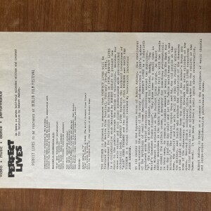 (Robert Ashley). Perfect Lives to be performed at Berlin Film Festival / February 19 – 26, 1984