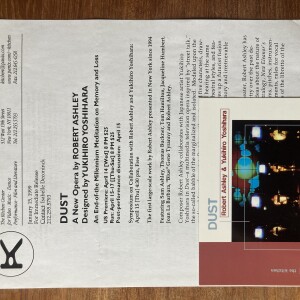 (Robert Ashley). Dust. Music by Robert Ashley. Video direction by Yukihiro Yoshihara. A multi-media television opera. The Kitchen, New York, April 14-17, 1999.