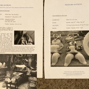 Willie Cole. 5 illustrated exhibition announcement cards, 5 x 7″ / 12.6 x 17.7cm each, except the last, and 5 press releases, Alexander & Bonin, New York, 1997 – 2013