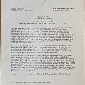 Willie Birch. Sculpture / Paintings. Arthur Roger, New Orleans, Louisiana, November 6-17, 1993