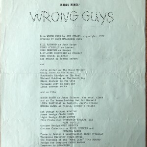 (Mabou Mines). Joseph Papp presents Mabou Mines’ Wrong Guys. Public Theater / The Other Space, New York, no date [1981]