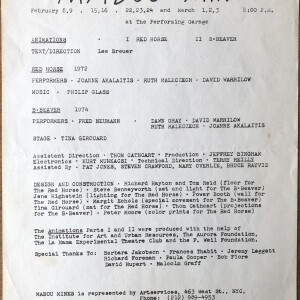 (Mabou Mines). Mabou Mines at the Performance Garage, February 8, 9, 15, 16, 22, 23, 24 and March 1, 2, 3, [1974]