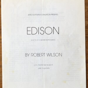 (Robert Wilson). Edison. 4 acts of a work in progress by Robert Wilson. Lion Theater, 422 West 42nd Street, [New York], June 19 – 24, 1979