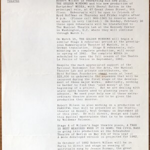 (Robert Wilson). Byrd Hoffman Foundation. Newsletter. Number 6. New York: February 1981