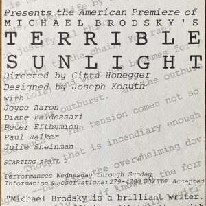(Michael Brodsky, Joseph Kosuth). Michael Brodsky. Terrible Sunlight. Directed by Gitta Honegger. Designed by Joseph Kosuth. South Street Theatre Company, New York. Starting April 2, [1990]