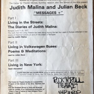 Judith Malina and Julian Beck. “Messages”. Columbia University, School of International Affairs, June 26, 1978