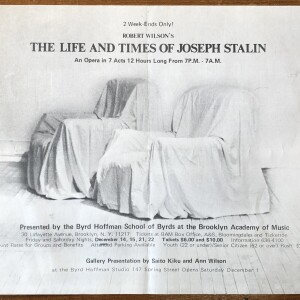 Robert Wilson. The Life and Times of Joseph Stalin; an opera. Brooklyn Academy of Music, December 14, 15, 21, 22, 1973