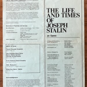 Robert Wilson. The Life and Times of Joseph Stalin. An opera. Brooklyn Academy of Music, December 14, 15, 21, 22, [1973]