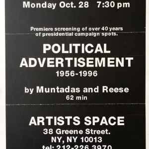 (Antoni Muntadas / Marshall Reese). Muntadas & Reese. Political advertisement, 1956 – 1996. Artists Space, New York, October 28, [1996]