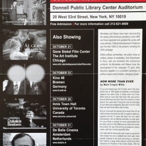 (Antoni Muntadas / Marshall Reese). Muntadas & Reese. Political advertisement VI, 1952 – 2004. Donnel Public Library Center Auditorium, New York, October 28, 2004